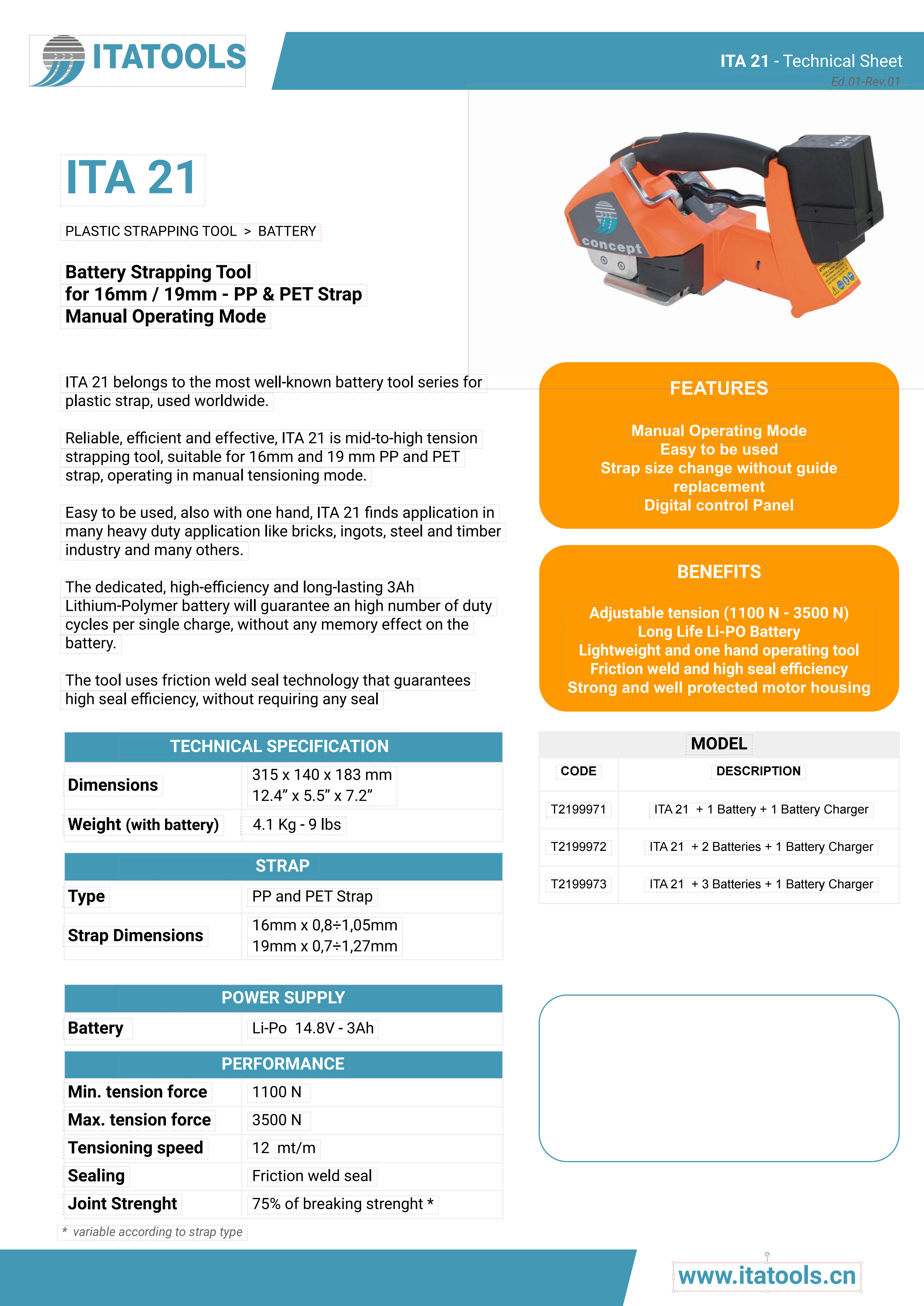 ITA21电动塑钢带打包机